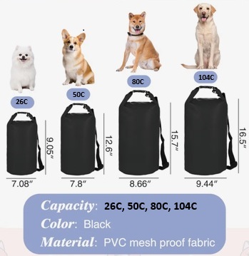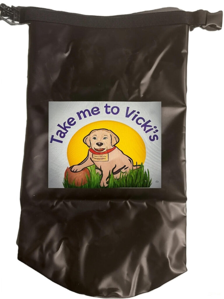 Our premium waterproof dog food storage bags are the perfect solution for keeping your pup’s food fresh, dry, and ready for any adventure! Made from durable PVC mesh-proof fabric with a secure roll-top closure, these stylish black bags come in four convenient sizes to suit every dog and every trip: 26-cup ($25), 50-cup ($30), 80-cup ($35), and 104-cup ($40). Each bag features either our adorable “Take Me to Vicki’s” puppy logo and a bold paw print design, adding a fun touch while clearly showing the world you travel with your best friend. Lightweight, easy to carry, and built to handle the outdoors, these bags keep kibble protected from moisture and pests whether you’re camping, boating, or just organizing at home. Grab yours today and make every meal an adventure!