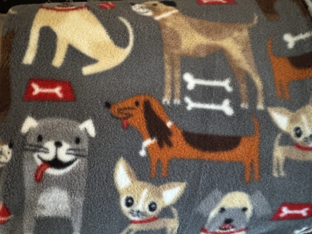 Elevate your pet’s comfort with our exclusive collection of 10 whimsical, cartoon-style fleece blankets, handmade to order within 48 hours just for your furry friend at Vicki’s Pet Services. Each design bursts with playful energy, featuring adorable cartoon dogs in a variety of breeds and fun themes—from dapper pups in bow ties and bandanas on soft pastel blues, to vibrant tie-dye patterns with bold paw prints and bones swirling in rainbow hues, cozy gray backdrops with panting dachshunds and wide-eyed chihuahuas alongside treats, and even festive snowman dogs frolicking in winter wonderlands. Crafted from high-quality, machine-washable fleece that’s gentle on paws and easy to clean, this blanket ensures warmth and durability for everyday use at home or while boarding. Personalize your choice: Every blanket includes a dedicated space to write your pet’s name with a permanent marker on our signature label reading “Take Me to Vicki’s” for easy identification during daycare, boarding, or grooming services.